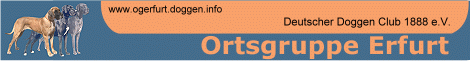 Deutscher Doggenclub 1888 e.V. (DDC) Landesgruppe Thringen des DDC 1888 e.V. Deutsche Doggen von der Bocksleite (Isis' Züchterin!)Deutsche Doggen von Himmelkron Deutsche Doggen vom Aischgrund (dort lebt der Vater unseres C-Wurfes!) Deutsche Doggen von der Schlehhecke (mit aktuellen Ausstellungsergebnissen!) Deutsche Doggen von Menglada Kruses Doggen VDHDeutsche Doggen von Thors Hammer (hier lebt Chike vom Sprottetal!) Deutsche Doggen vom Altranstdter Schloß